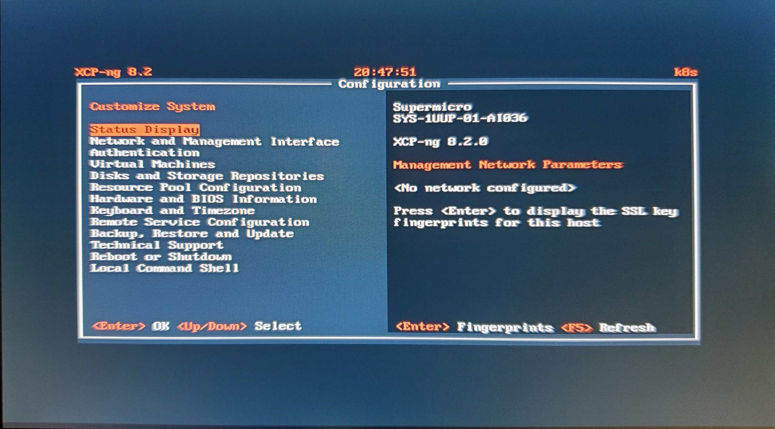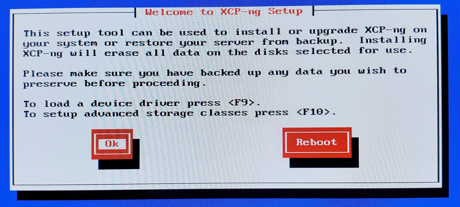 At this point, be a little patient with the reboot. Mine took just a bit longer on the very first boot. If everything went well, you should see the XCP-ng home screen after bootup completes.