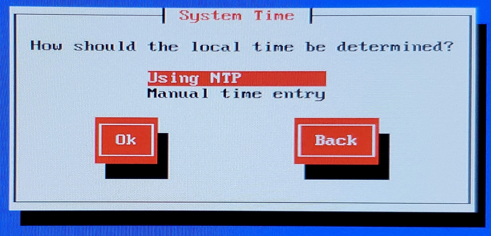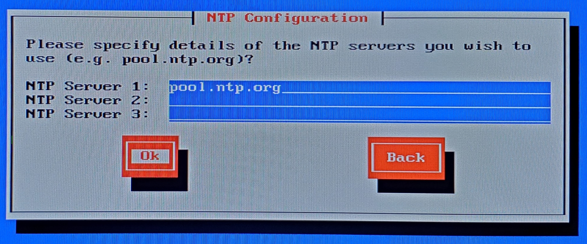 You have the choice to either set the computer’s time yourself or use a web service to sync the server’s time to. For this installation, I just chose to go with the default pool.npt service. I was too lazy to type in the date and time.