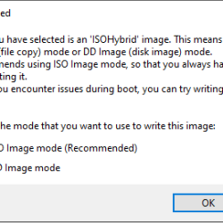 You will be presented with a choice to write the image as an ISO or DD type image. I have chosen to go with ISO.
