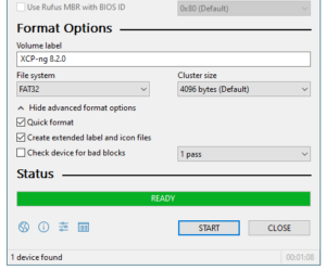 After Rufus has completed creating your bootable XCP-ng install media, you should get the green SUCCESS message.