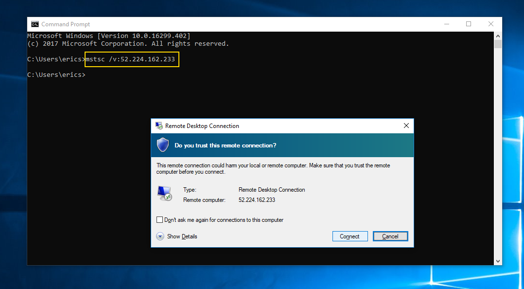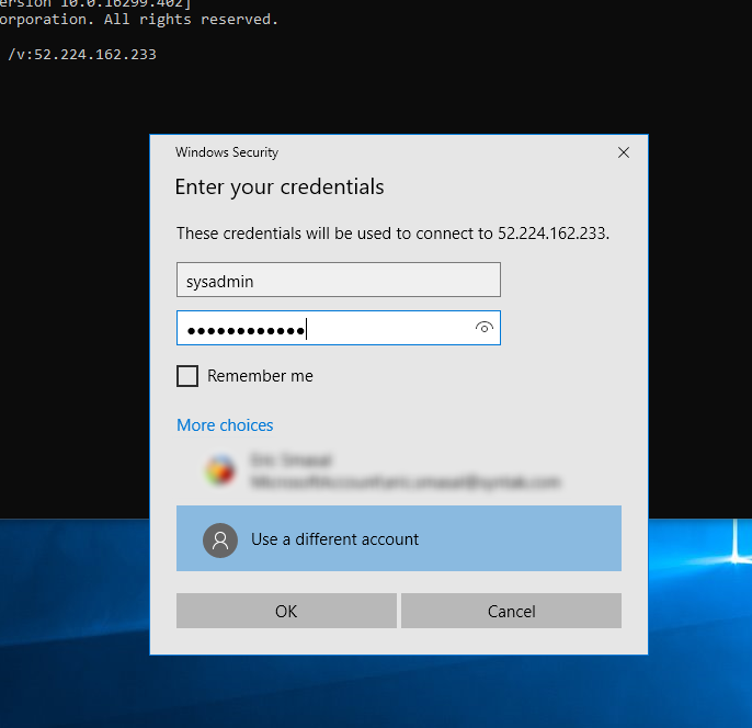 Now that we have our Public IP for the VM, let’s RDP into it to set up IIS.