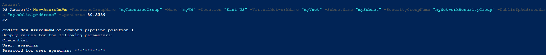 First, I will fire up a VM on Azure using the Cloud Powershell command.