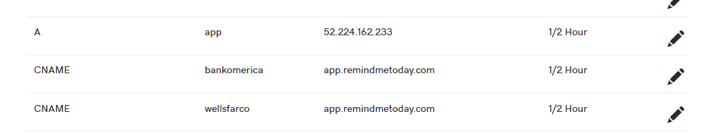 Notice also that I have pointed both subdomains to my main app.remindmetoday.com domain.