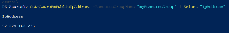 Once the VM is created, grab its Public IP Address. We will need this to RDP into the machine and also verify that the web server is serving pages.