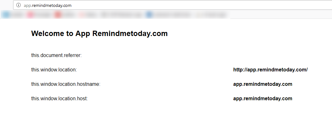 The html page again only resides in the app.remindmetoday.com web site. The page is simple and just outputs some JavaScript that displays our host information.